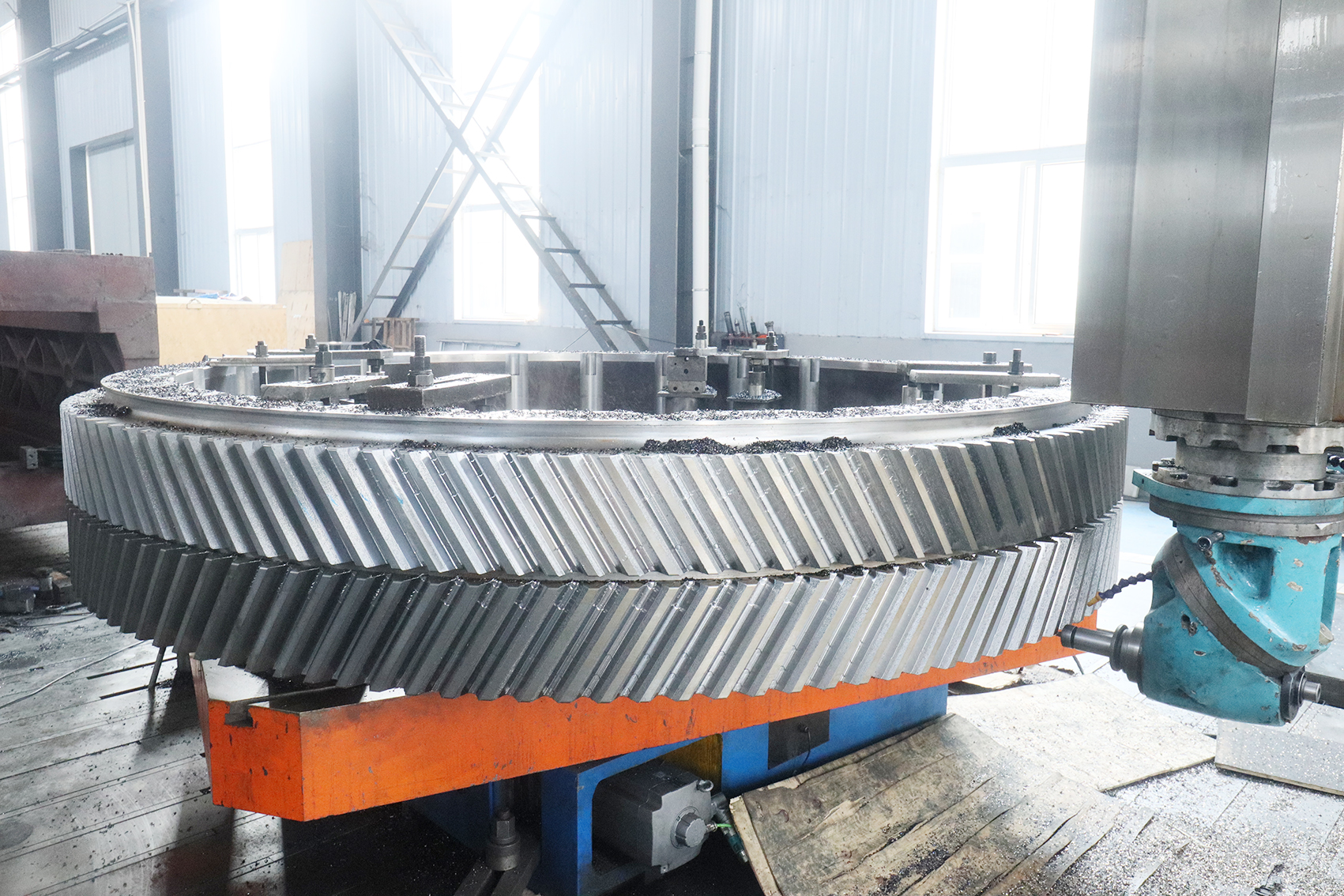 ?回轉(zhuǎn)窯大齒圈震動(dòng)的主要原因包括:齒圈松動(dòng)或下沉、窯體彎曲、大小齒輪嚙合問(wèn)題以及安裝精度不足等。?這些問(wèn)題會(huì)導(dǎo)致齒輪嚙合精度下降,從而引發(fā)震動(dòng)。