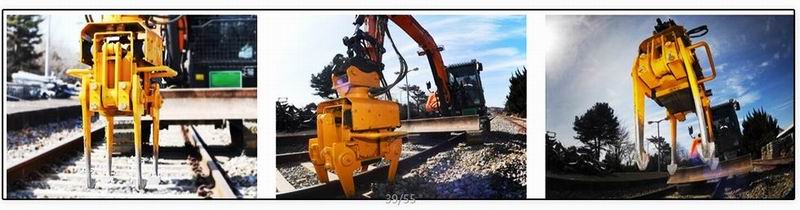 夯附件是安裝在挖掘機(jī)臂上用于軌道維護(hù)的設(shè)備,它可以壓實(shí)軌道碎石,操作簡(jiǎn)單,夯附件主要部件采用鋼板焊接,加工,配有液壓缸,回轉(zhuǎn)驅(qū)動(dòng)和馬達(dá)。通電后夯附件頭部和腿部可以運(yùn)動(dòng),震動(dòng)可達(dá)3000次/min以上,可以快速壓實(shí)碎石。